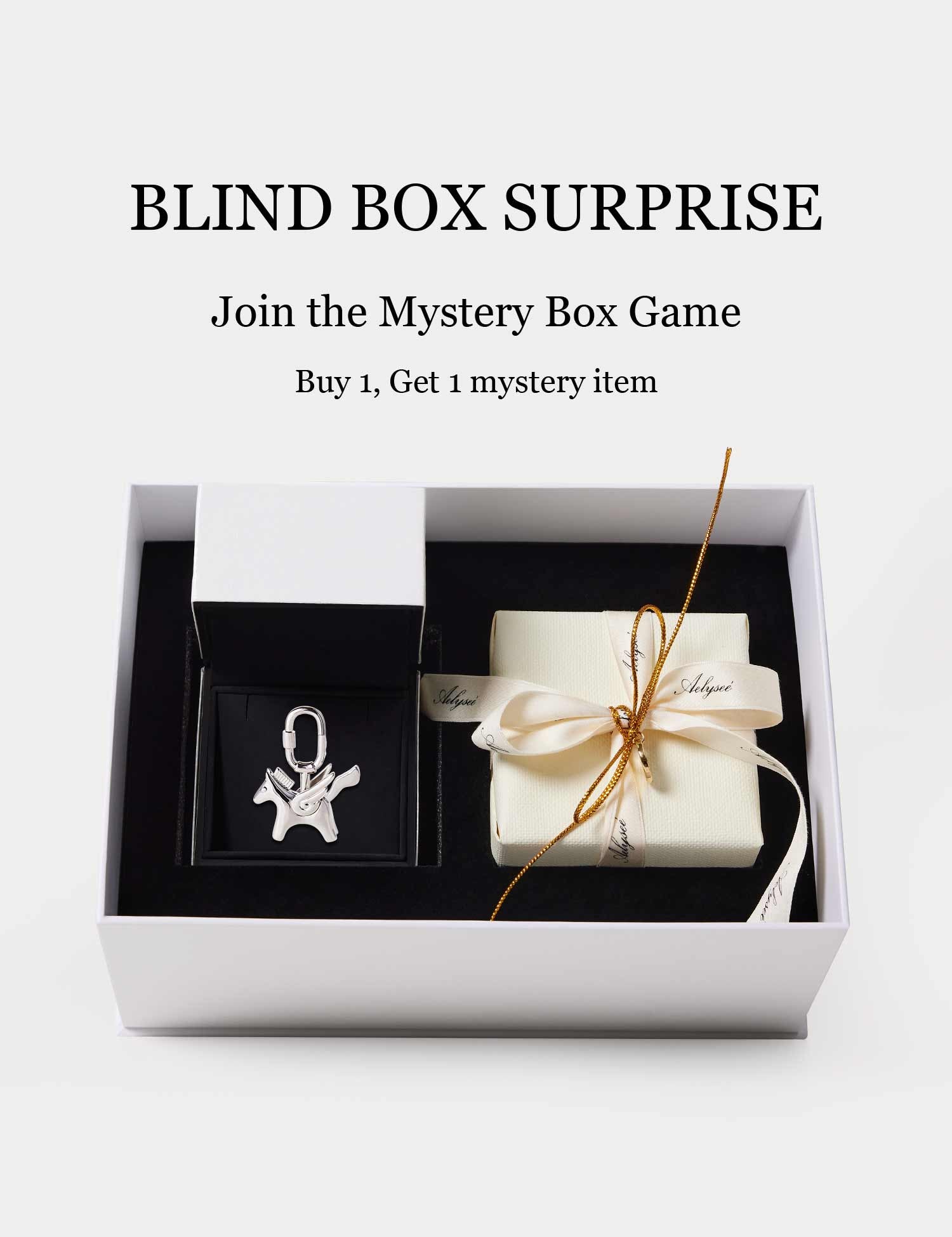 The Aelysee Bag Charm Mystery Box blends choice with surprise! Inside, you'll receive two items: one handpicked by you and the other a surprise—a special piece from our collection or an exclusive, unreleased design, adding a thrilling element to your luxury collection.